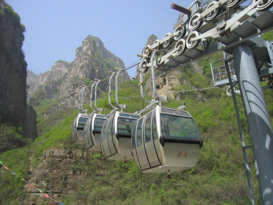 2005年5月建成。索道位于河南省神農(nóng)山國家級(jí)風(fēng)景名勝區(qū),型式為單線脈動(dòng)循環(huán)車組式,線路水平距離842米,高差425米,單向小時(shí)運(yùn)量400人,運(yùn)行速度為3.6米/秒。